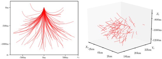 The target starts from the origin, so the initial condition for the coordinates is , but other initial parameters , , are assumed to be random with known distributions.