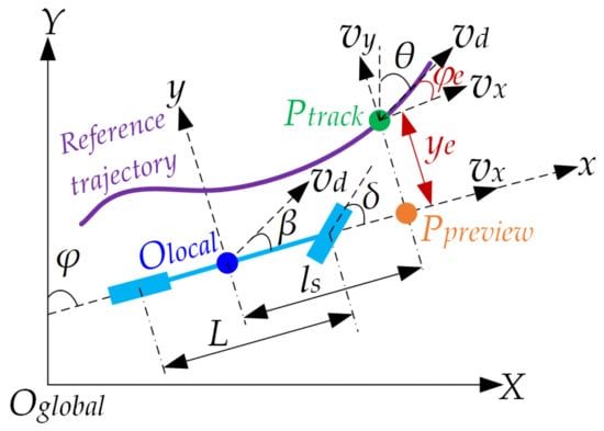 - Zhao, Y.Q.; Wang, J.; Zang, L.G.; Li, B.; Wu, Y. Path tracking for different wheelbase vehicles. J. Shanghai Jiaotong Univ. 2015, 49, 481–486. (In Chinese) [Google Scholar] [CrossRef]