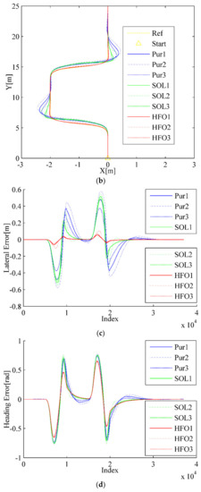 - Sun, C.; Zhang, X.; Zhou, Q.; Tian, Y. A model predictive controller with switched tracking error for autonomous vehicle path tracking. IEEE Access 2019, 7, 53103–53114. [Google Scholar] [CrossRef]