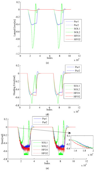 - Hu, C.; Wang, R.; Yan, F.; Chen, N. Output constraint control on path following of four-wheel independently actuated autonomous ground vehicles. IEEE Trans. Veh. Technol. 2015, 65, 4033–4043. [Google Scholar] [CrossRef]