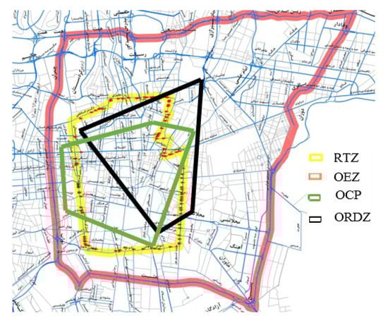Figure 15 illustrates the shape of ORDZ compared with RTZ, OEZ, and OCP in the city of Tehran, Iran. As shown in the figure, OEZ surrounds other zones and this is because the volume-to-capacity ratio in OEZ is more than other methods. Also, all four zones have a common area in terms of traffic load.
