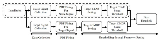 The purpose of the proposed algorithm is to set a threshold by considering both the false alarm and the miss-detection rates rather than only the false alarm rate. The key point of the proposed algorithm is considering not only the noise signal but also the target signal to determine a threshold. To do so, the following steps are required.