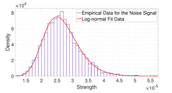 Probability distribution (PDF) fitting—analyze the statistical distribution of the strength of the collected noise and the target signals.
