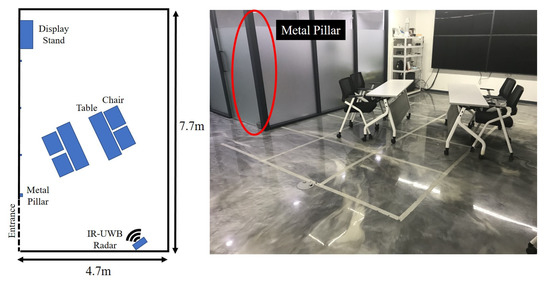 This is different from short-range radar, such as impulse radio ultra-wideband (IR-UWB) radar, used in indoors. As the clutter indoors results in a severity of multi-path and low SNR, the strength difference between the target signal and the noise is not as clear as outdoors. In other words, the noise signal is likely to be stronger than the target signal. If a threshold is set by considering only the false alarm, which is determined by the noise signal, there could be a relatively high probability of miss-detection. In addition, it is relatively easy to collect the target signals using short-range indoor radar. It is relatively easy to reproduce the situation when the target exists in an indoor environment; thus, consideration of miss-detection is both necessary and possible for short-range indoor radar.