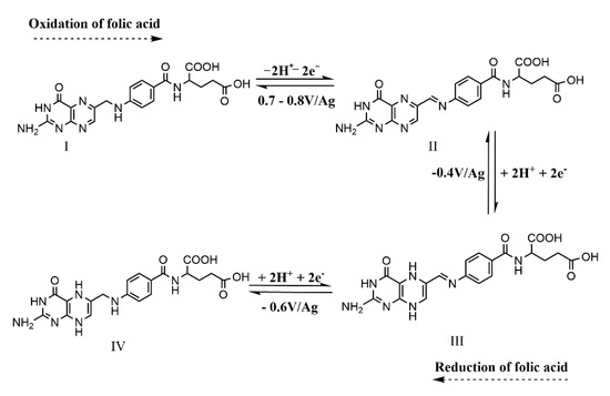 The electrochemical reversible reduction of FA to 5, 8 dihydrofolic acid [25].