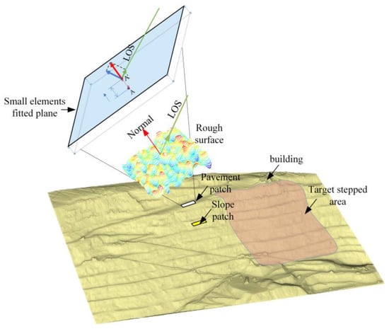 Terrain point cloud introduces greater detail so that radar wave incident angles define geometric and scattering models. The model helps in solving the one-to-many problem during the data fusion process. For the road surface and slope surface of the slope, they have completely different relative incident angles.