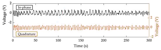 In-phase and quadrature Doppler radar signals during the measurements. The participant was breathing normally in front of the radar sensor.