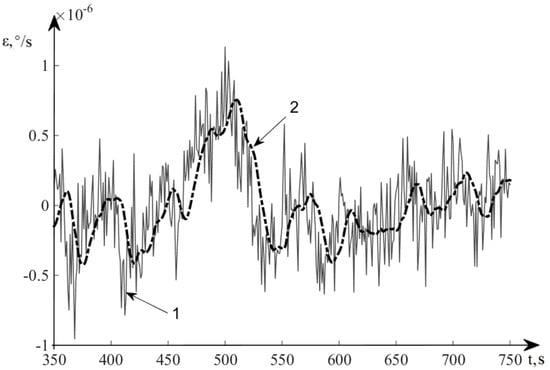 In Figure 9, line 1 denotes the velocity drift of a real system GSP, and line 2 represents the estimation of deviation angles of the GSP.