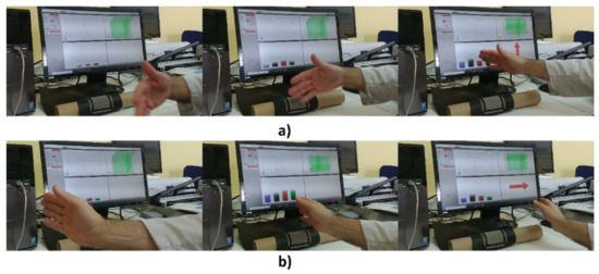 Next, a validation of the sensors was carried out with different subjects. The objective was to measure the detection rate of several gestures. Figure 15 shows two of the gestures used in the validation procedure. The software used, AUREA, was supplied by Microchip.