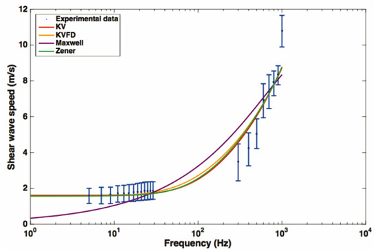 One of the key features of viscoelastic tissues comes from the physics of wave propagation, where the dispersion is defined as a compound expression of the poroelastic and microstructural media governed by the complex fibrous multiscale microstructure of the stroma [69,70,71,72]. It is also known that the amplitude and intensity of waves decays proportionally to the distance traveled. Additionally, in a highly viscous environment, where the microvasculature and hemodynamics play an important role, it is observed that wave phase velocity changes with frequency, and wave amplitude is affected by geometric factors, such as boundary conditions and the sizes of scattering particles, similar or smaller than the wavelength [73]. Another important point is that the frequency-dependent behavior complicates the comparison of different technologies, since each author chooses a suitable range [6]. Neglecting the viscous part introduces bias for the estimation of elasticity, since the effect of wave dispersion is ignored.