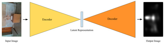 The decoder has the same architectural structure with the encoder network, with the exception that the layers are placed in reverse order, and the max pooling layers are replaced with up-sampling layers. To generate the saliency map, the decoder has an additional 1 × 1 convolutional layer in the output, with sigmoidal activation. The decoder weights were initialized randomly. The generator accepts an RGB image IRGB as stimulus and generates a saliency map that resembles the human eye fixation on that IRGB.