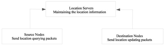 A location service provides the location information for a specific node in a VANET by implementing a mechanism that tracks the location of nodes in the network. Figure 1 shows the general structure of a location-service management protocol. The scheme essentially consists of three different entities (a location service, a source node, and a destination node), and two main operations (a location query and a location update). Every node updates the location service responsible for handling the location information. When a node needs to send a packet, it queries the location service and retrieves the destination’s location. The location service of a node may be situated on the source node itself or on another node. When the location service is present on the source node, the query is locally resolved by the source node, as is the case for location-information dissemination methods.