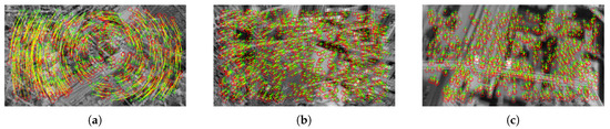 As shown in Figure 3, some displacements diverge from the others. They are much longer, and their directions “do not match” the visible change trend. They are the result of incorrect keypoints matching and may adversely affect the further analysis. Therefore, we filter out the points that do not satisfy the following criterion: