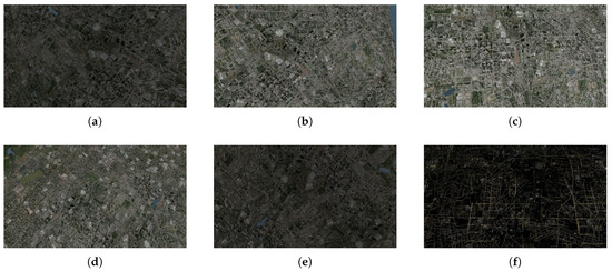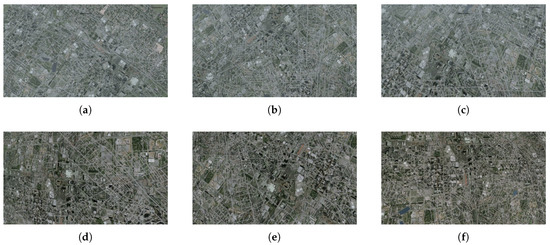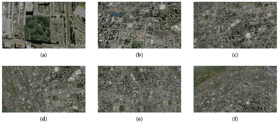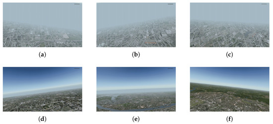 Selected frames from test videos in group 3: (a) 2000 ft, (b) 4000 ft, (c) 6000 ft, (d) 8000 ft, (e) 10,000 ft, (f) 12,000 ft.