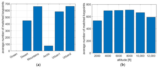 The average number of matched keypoints for: (a) different scenes, (b) different altitudes.