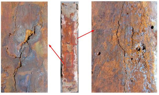 - Fu, C.; Jin, N.; Ye, H.; Jin, X.; Dai, W. Corrosion Characteristics of a 4-Year Naturally Corroded Reinforced Concrete Beam with Load-Induced Transverse Cracks. Corros. Sci. 2017, 117, 11–23. [Google Scholar] [CrossRef]