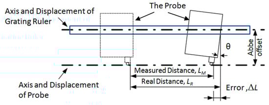 An Abbé error may be avoided only when there are no angular θ movements and no Abbé offset of the grating ruler and the axis of probe.
