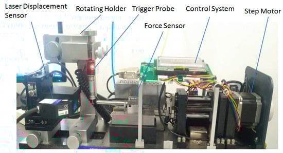 According to the description of measurement principle in Figure 3, the calibration system of the parameters of the trigger probe was established, as shown in Figure 7. Taking a type of trigger probe widely used in the industry as the test object, the pre-travel and unidirectional repeatability of the probe were measured to verify the function of this calibration system.