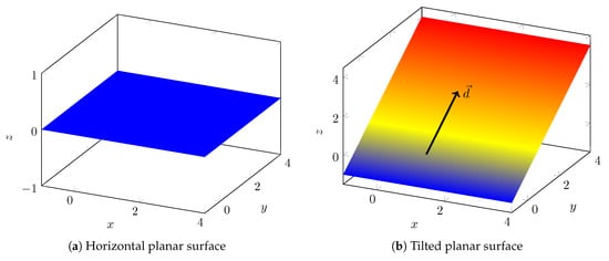 Surfaces that consist solely of aligned, parabolic points fulfil this condition. These surfaces are extrusions of a 3D curve (see Figure 12). The direction of does not depend on the yaw. Thus, the position is always unobservable on such a surface.