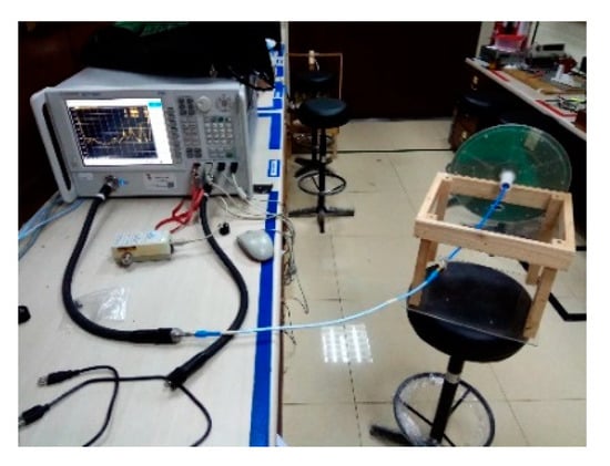 Figure 23 shows the VSWR measurement setup using an N5227A PNA Microwave Network Analyzer. Figure 24a depicts the measured and simulated VSWR of the proposed antenna. The simulated result shows the antenna is covering from 350 to 9450 MHz for VSWR < 2:1. However, the measured result shows that the antenna can cover a broader range of 350 to 10,000 MHz with a substantial band ratio of 28.57:1. The discrepancy can be caused by insufficient mesh resolution to represent the smooth edge of the fine curvature arc microstrip line in the simulation model. Figure 24b exhibits the spike of VSWR can occur for segmented edge instead of a smooth edge microstrip line of the antenna. Nevertheless, the higher frequency range 6000–10,00 MHz may not be the focus for the current DAS system but possible future expansion.