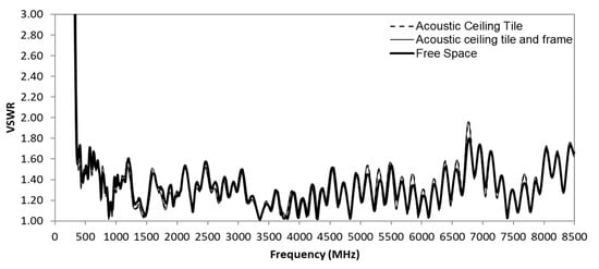 Ceiling tiles and frame effect to the antenna measured VSWR.
