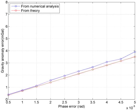 Gravity anomaly errors when phase error is 0.5 mrad.