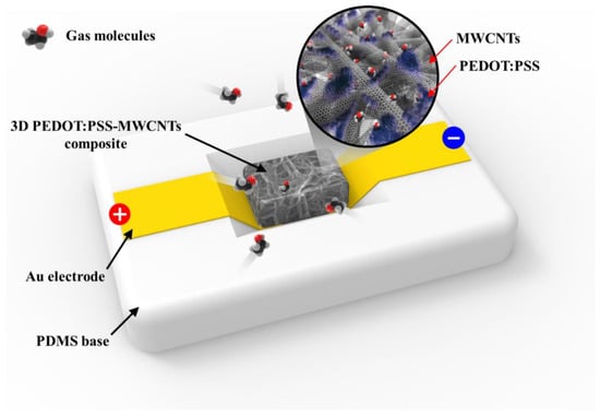 Kim, H.; Jang, Y.; Lee, G.W.; Yang, S.Y.; Jung, J.; Oh, J. Tunable Chemical Grafting of Three-Dimensional Poly (3, 4-ethylenedioxythiophene)/Poly (4-styrenesulfonate)-Multiwalled Carbon Nanotubes Composite with Faster Charge-Carrier Transport for Enhanced Gas Sensing Performance. Sensors 2020, 20, 2470. https://doi.org/10.3390/s20092470