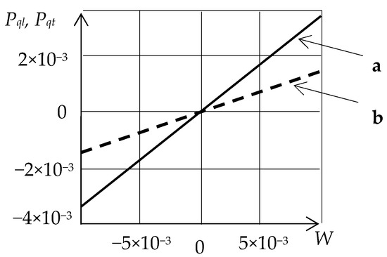 As shown, this dependence is linear and, therefore, and , in reference to W, are constant. Thus, the ratio of the ellipse polarization axes of the propagating waves can be an informative parameter for AMS SE design, with the sensitivity axis being orthogonal to the wave propagation direction.