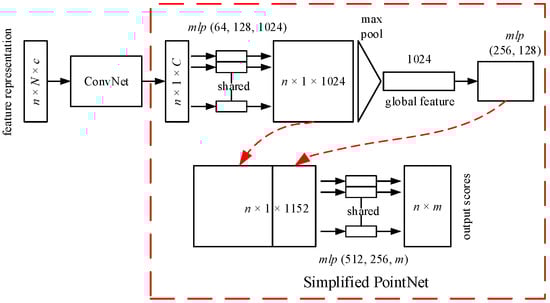 where fmlp represents the activation function, W is a weight matrix, and b is a bias. The Rectified Linear Unit (Relu) is used as the activation function in the simplified PointNet.