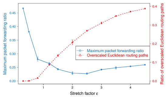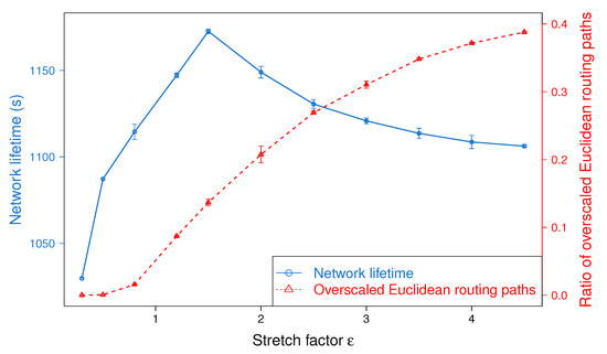 - Nguyen, P.L.; Ji, Y.; Le, K.; Nguyen, T.H. Load balanced and constant stretch routing in the vicinity of holes in WSNs. In Proceedings of the 15th IEEE Annual Consumer Communications Networking Conference (CCNC), Las Vegas, NV, USA, 12–15 January 2018; pp. 1–6. [Google Scholar]