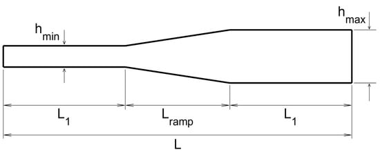 The transversal section of the plate in this case, from the emitting/receiving side to the opposite side, is as sketched in Figure 7, where the various indicated lengths are cm, cm, cm, mm, and mm. Note that the thickness variation is not sharp in the present case, but is imposed along a short ramp of length . Also, the emitters and the receivers are located in the thin side of the plate.