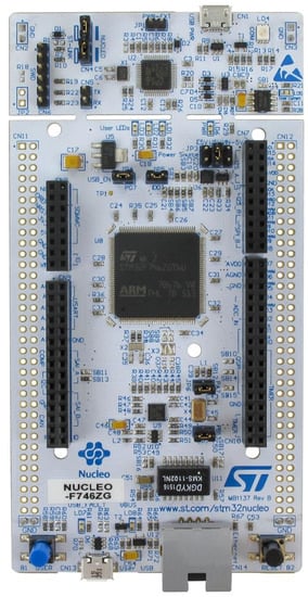 - NUCLEO-F746ZG—STM32 Nucleo-144 Development Board with STM32F746ZG MCU, Supports Arduino, ST Zio and Morpho Connectivity—STMicroelectronics. Available online: https://www.st.com/en/evaluation-tools/nucleo-f746zg.html (accessed on 15 March 2020).