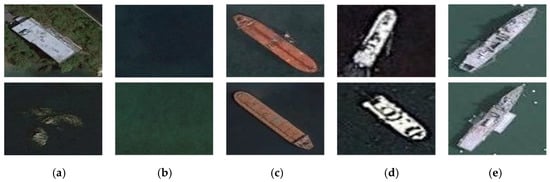 Ships are important targets for monitoring, emergency rescue, etc. The detection and identification of ships can monitor the distribution of ships in key sea areas and can also meet the actual work needs of maritime traffic control, maritime search and rescue. However, if ship recognition depends only on manual processing, there will be many problems, such as heavy workload, low efficiency, high repetitiveness, strong subjectivity, high cost, etc., that cannot meet the efficient information needs of modern society. Therefore, ship detection and recognition is a research hotspot in the field of image recognition []. In general, traditional remote sensing image ship detection methods are based on gray threshold segmentation and grayscale statistics [,,]. These methods are suitable for uniform sea surface textures, low water surface gray value and high contrast between the sea surface and ships. However, in some complicated situations, such as the occurrence of waves, cloud cover and low gray value of the ship, it is easy for false alarms to appear. Another popular method is based on deep learning [,]. This type method has higher detection accuracy, but it requires preparing templates in advance; there also are problems of relying on prior knowledge and high training complexity. Other commonly used methods are edge detection [] and fractal models []. The former uses the hull to find obvious edge features on the image. Using this, this method can extract the edge contour and judge whether it is a ship, according to its shape characteristics. The latter uses contrasting classification characteristics of natural and artificial background s for detection, but detection error is higher under the influence of cloud and fog.