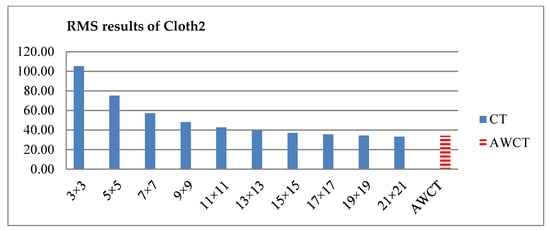 The results of Cloth2 by AWCT. (a) Edge information and schematic diagrams of the biggest window size in (b) 13 × 13, (c) 15 × 15, (d) 17 × 17, (e) 19 × 19, and (f) 21 × 21.