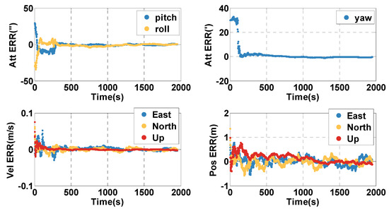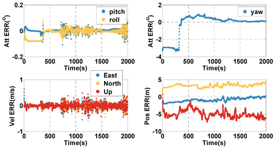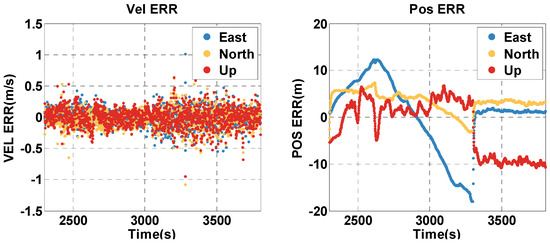 Figure 15. The errors of the traditional GNSS/INS tightly coupled integration are shown in