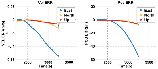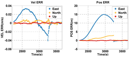 Figure 9. The errors of the traditional GNSS/INS tightly coupled integration are shown in