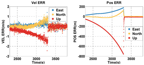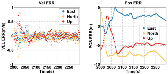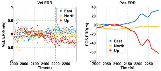 Figure 18. The position and velocity errors of the traditional GNSS/INS tightly coupled integration are shown in