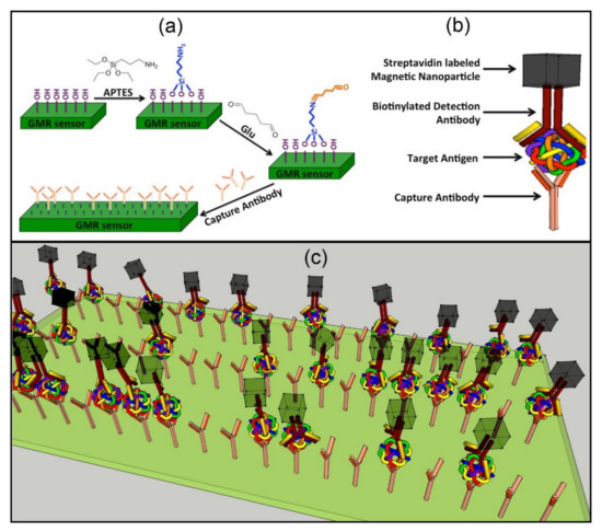 - Baselt, D.R.; Lee, G.U.; Natesan, M.; Metzger, S.W.; Sheehan, P.E.; Colton, R.J. A Biosensor Based on Magnetoresistance Technology. Biosens. Bioelectron. 1998, 13, 731–739. [Google Scholar] [CrossRef]