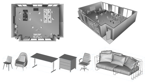 - Chang, A.X.; Funkhouser, T.; Guibas, L.; Hanrahan, P.; Huang, Q.; Li, Z.; Savarese, S.; Savva, M.; Song, S.; Su, H.; et al. ShapeNet: An Information-Rich 3D Model Repository. arXiv 2015, arXiv:1512.03012. [Google Scholar]
