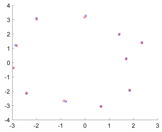 Birdeye view onto the environment with estimated (red) and groundtruth (blue) locations of the objects using the approach of Lan et al. [51]. Dataset: rm4. Unit: [m].