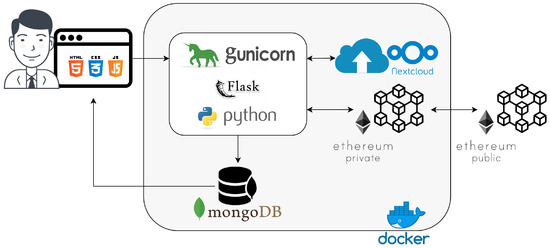 All requests coming from patients, nurses, technicians and doctors flow through the WSGI interface developed with the Python web application framework Flask and deployed on the Gunicorn Python WSGI HTTP server. All the components are configured as Docker containers to take the advantages of virtualization technology allowing service portability, resiliency and automatic updates that are typical of a Cloud Infrastructure as a Service (IaaS). The WSGI provides a front-end that allows retrieving all existing patients’ information (such as personal details, disease and pharmaceutic codes, links to clinical documentation and Blockchain hash verification); adding new patients; and submiting new treatments specifying all the required pieces of information. Specifically, a web page is dedicated to the registration of a new patient for saving his/her primary personal information and another web page is dedicated to the registration of a new treatment. It is possible to select the medical examination date, patient and doctor who does the registration.