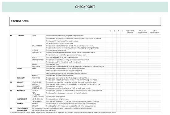 | Knight et al. [13] | “Assessing the Wearability of Wearable Computers” | Wearables, understood as perceptions of wellbeing through comfort assessment. |