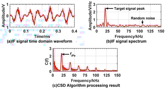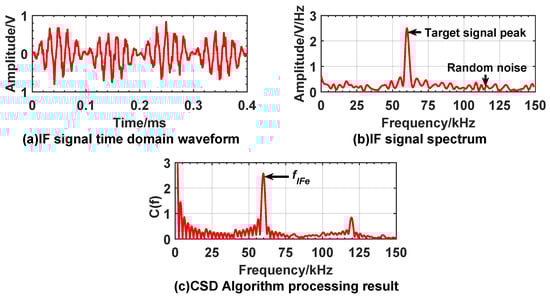 Corretropy is used to compare the degree of similarity between the two sets of signals. It was first proposed by Jose C. Principe, a professor of electrical and computer engineering at the University of Florida, and analyzed in detail [11,12]. Garde et al. conducted systematic theoretical analysis, applied research on correntropy, and defined the Fourier transform of correntropy as the Corretropy Spectral Density (CSD) function [13,14,15,16,17]. The correntropy performs well in signal processing, image processing, artificial intelligence, etc. Chen et al. designed an adaptive filter based on the generalized maximum correntropy criterion to maximize the correlation between the input signal and the output signal, thereby effectively suppressing noise [18]. Yu et al. proposed a time delay estimation algorithm based on the weighted correntropy spectral density and this method was accurate in the presence of Gaussian or impulsive noise with a low generalized signal-to-noise ratio [19]. In view of the advantages of CSD algorithm in determining the similarity of two sets of signals, this paper chooses the CSD algorithm to process an intermediate frequency signal.