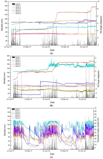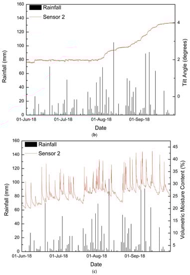 - Uchimura, T.; Towhata, I.; Lan Anh, T.T.; Fukuda, J.; Bautista, C.J.B.; Wang, L.; Seko, I.; Uchida, T.; Matsuoka, A.; Ito, Y.; et al. Simple monitoring method for precaution of landslides watching tilting and water contents on slopes surface. Landslides 2010, 7, 351–357. [Google Scholar] [CrossRef]