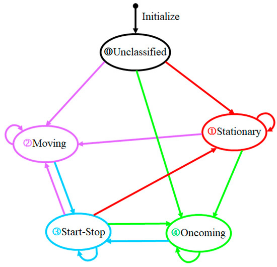(2) The absolute speed of the target vehicle is between for consecutive cycles. The target motion state transition can be divided into the following four conditions: