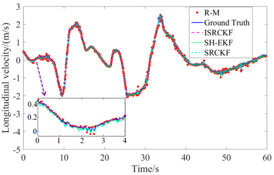 The on-board millimeter-wave radar is driving in the roads, and the statistical parameters of measurement noise are often unknown and time-varying. If the values of measurement noise and process noise are not consistent with the actual noise statistics, the filter will diverge. Therefore, constructing the ASRCKF for online estimation of unknown noise statistics is of great significance for improving the accuracy of filters. Sage-Husa is often used to estimate the statistical characteristics of noise online because of its simplicity and good real-time performance. However, the conventional Sage–Husa noise statistical estimator is suitable for the constant coefficient noise statistical characteristic estimation of linear systems. In the literature [26], the Sage–Husa noise statistic estimator in linear system is extended to the non-linear Sage–Husa noise statistic estimator. Therefore, based on the literature [26], we combine the Sage–Husa noise statistical estimator and cubature rules to derive a time-varying noise statistical estimator suitable for nonlinear systems.