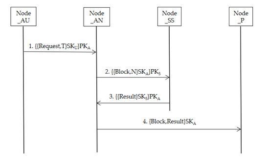 Furthermore, Figure 7 shows the consensus protocol based on asymmetric encryption in message transmission. (In Figure 9, Node_P represents the nodes of all participants in the system, PK represents public key, and SK represents private key).