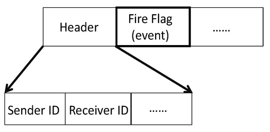 It should be noted that, by updating the location and velocity, the PSO increases the number of invalid paths [27]. Consequently, due to application, the number of invalid paths must be reduced, and valid paths must be detected quickly. To achieve this goal, the priority encoding/decoding approach of PSO has been successfully tested [27,39]. However, it is necessary to develop the tree encoding appropriate to the disaster areas. Thus, the new packet format with respect to the fire flag is presented in Figure 2.