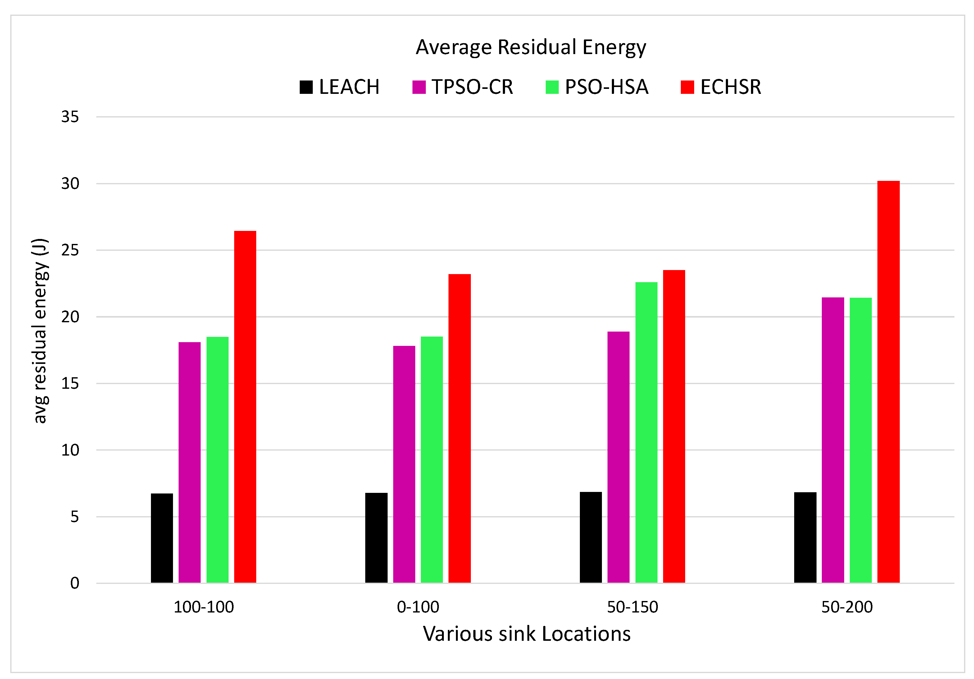 | Base Station (BS) | Various sink locations | (0, 100), (100, 100), (50, 150), (50, 200) |