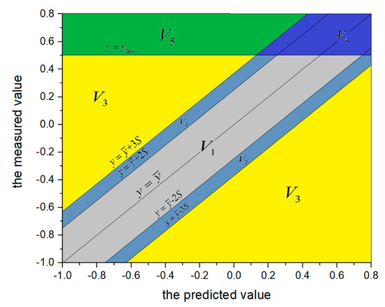 To obtain the parameters in Equation (2), the monitoring data is partitioned into the training samples and test samples. For the training samples, the least square method is used to calculate the parameters of the mathematical equation. The test samples are used to analyze the dam safety state during the time period of test samples [16]. Given the calculated mathematical equation , the five evaluation indexes in Figure 2 are defined in Table 1.